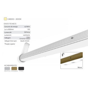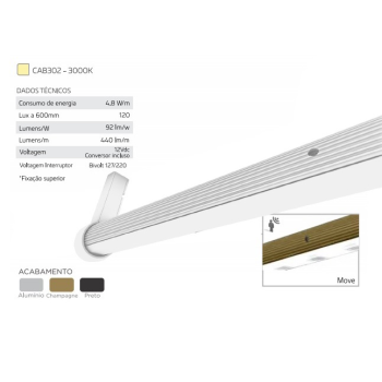 CABIDEIRO LED QUENTE 30280 1200MM ALUMINIO